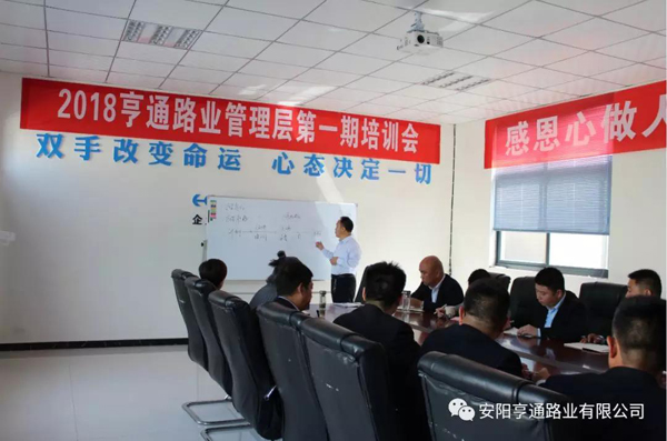 2018年4月18-20日,為加強(qiáng)公司管理隊(duì)伍建設(shè),增進(jìn)中層間的相互交流,培養(yǎng)鍛煉團(tuán)隊(duì)精神和協(xié)作意識(shí),亨通路業(yè)全體中層從天南地北各個(gè)項(xiàng)目返回公司集中開(kāi)展了為期三天的以“感恩心做人,責(zé)任心做事”為主題的專(zhuān)項(xiàng)培訓(xùn)活動(dòng)。